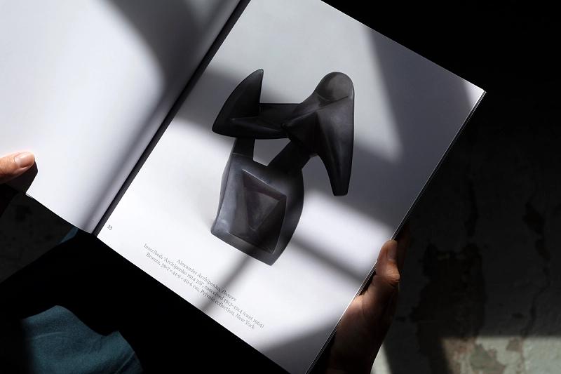 Our latest catalogue for the current exhibition at the Estorick Collection which shows the work of the Ukrainian-American artist Alexander Archipenko in relation to the Italian avant-garde. The cover shows a close-up detail of one of Archipenko’s sculptures printed in black and silver, with a gloss lamination and Kurz 914 foil over the top. The book’s edges are trimmed . Type on the cover is Sept Stencil from Commercial Type.